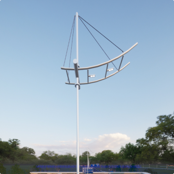 O modelo telecônico é desenvolvido em seções de diâmetros variados e unidos por solda, projetados para suportar diferentes cargas e finalidades.